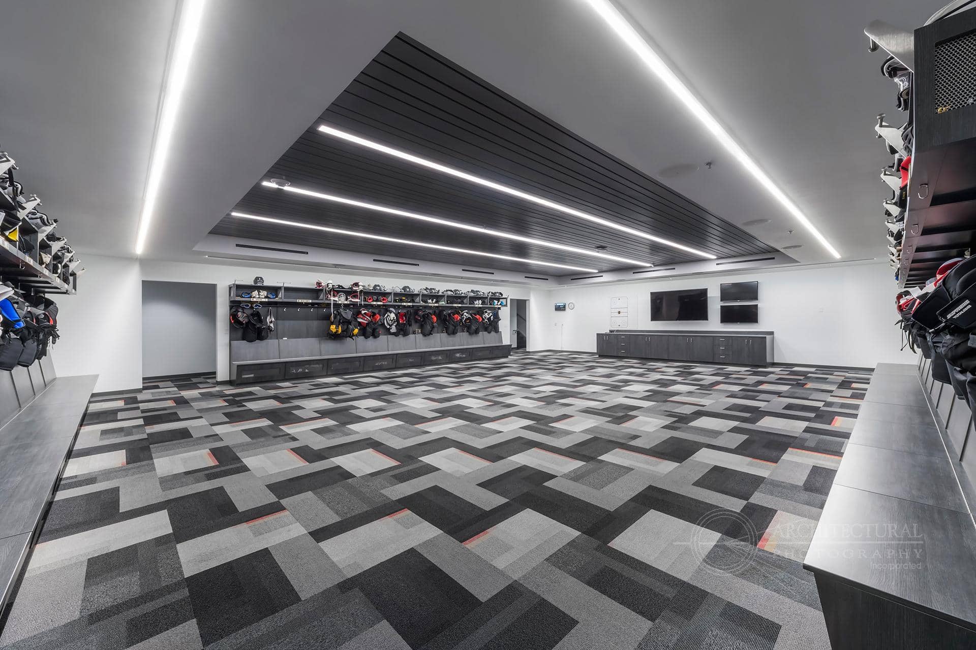 We recently faced this challenge when providing commercial photography for Leo A Daly of the new City National Arena, home of the Las Vegas Golden Knights training facility in Summerlin, NV. Not only is this new arena home of the Golden Knights, it is also a practice rink for the UNLV hockey team, as well as a public rink that offers open skating and private lessons.